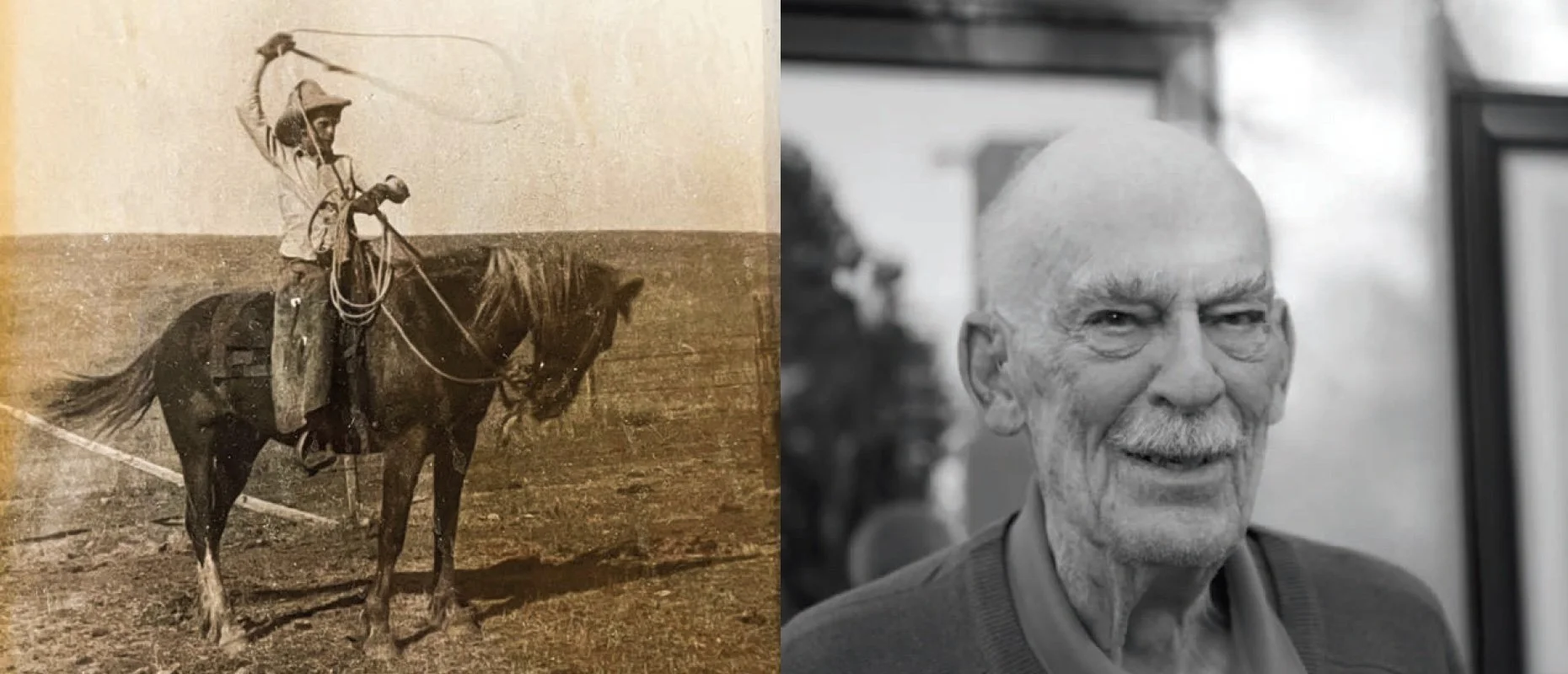 Photo credits (Left to right): John on a horse circa 1930s courtesy of John O. Baxter; Recent portrait of John O. Baxter by Diana Proctor