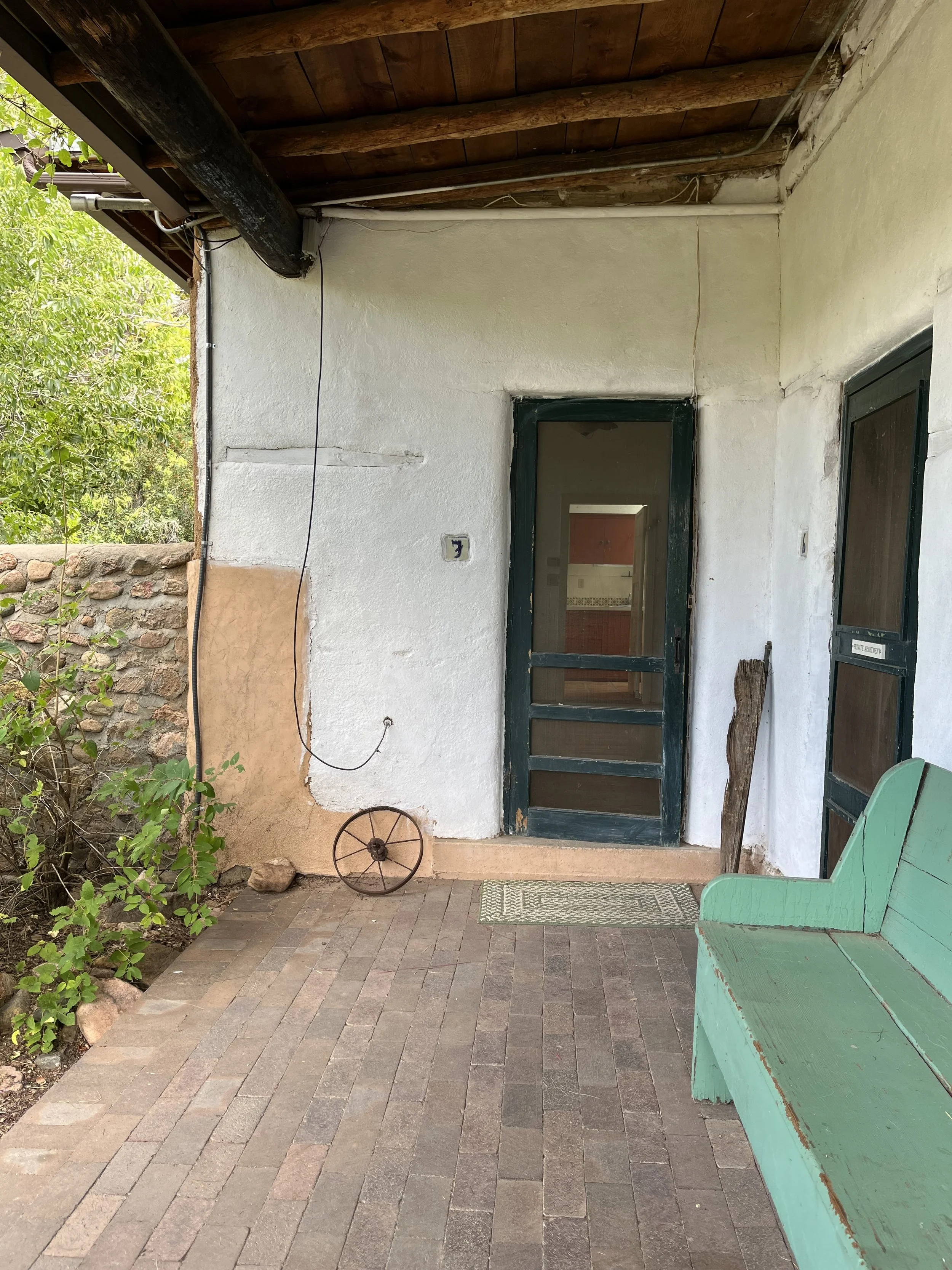 This artist apartment has two bedrooms with abundant historical style and a quirky, historic charm. The living room’s view looks out on the shared communal area offering opportunity for engagement with other resident artists in a private setting. One bedroom offers a cozy space also perfect for an office. The bathroom has a clawfoot tub and the adjacent hall closet provides additional storage in the comfy historic apartment. The street-side bedroom looks out on Canyon Road and takes in the warmth of the afternoon sun. The kitchen and smaller bedroom offer access to the private courtyard reserved exclusively for this apartment. Finally, one cannot express the beauty of the grounds in full bloom with the historic garden established in the mid-1800s and the seperate and private lower orchard and fountain.