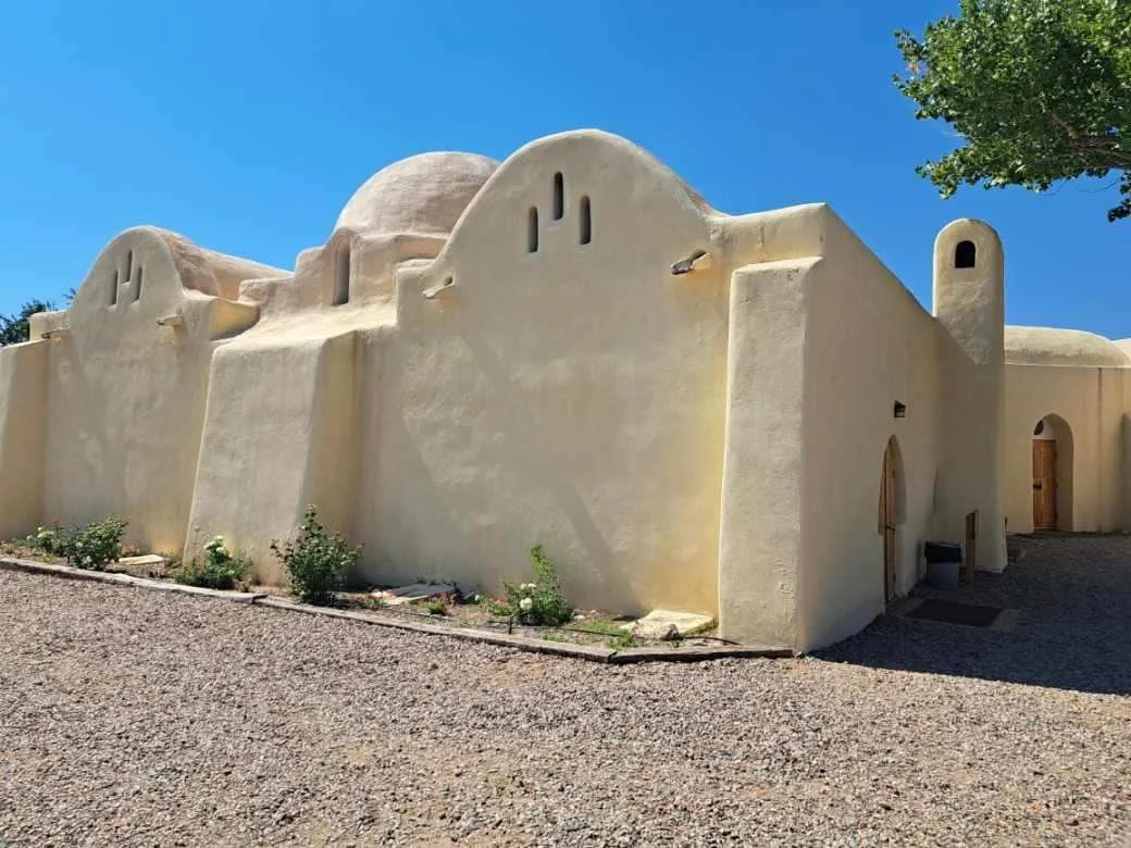 On Sunday, October 19th, HSFF will host a tour of Dar al Islam. The tour will begin at HSFF with a visit to the exhibition by Sisneros and Alkharboutli. After that, participants will travel to Abiquiu to explore Dar al Islam, a large and significant historic adobe architectural complex designed by architect Hassan Fathy.